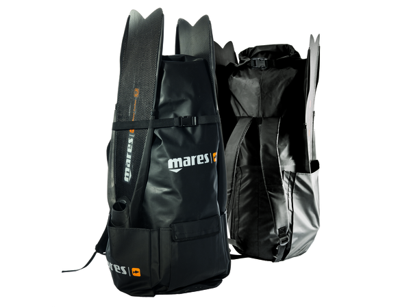 Der wasserdichte Attack Rucksack ist geräumig und besitzt einstellbare, ergonomischen Schultergurte, Dokumentenfach auf der Aussenseite und zwei seitliche Taschen für lange Flossen.