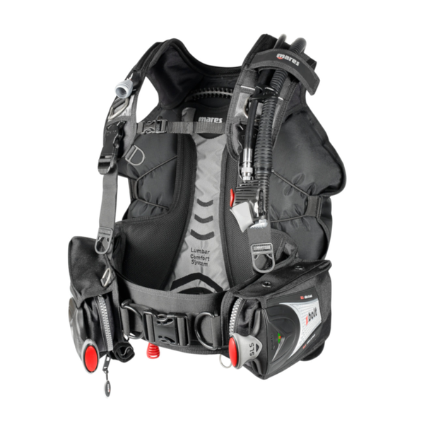 Das Bolt SLS von Mares ist super komfortabel und stromlinienförmig. Es eignet sich perfekt zum Reisen und ist für Einzel- oder aber auch Doppelflaschen kompatibel. Das Jacket besitzt schwenkbare Schulterschnallen. Auch der Kummerbund ist für die optimale Passform verstellbar.
